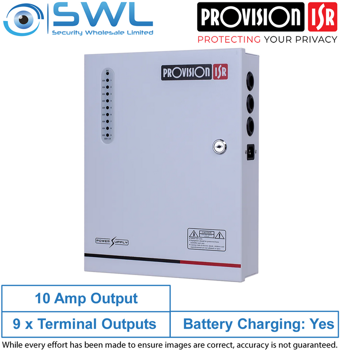 - Provision-ISR PR-10A9CH-B: 9CH 12VDC 10 Amp Power Supply c/w Battery Charging