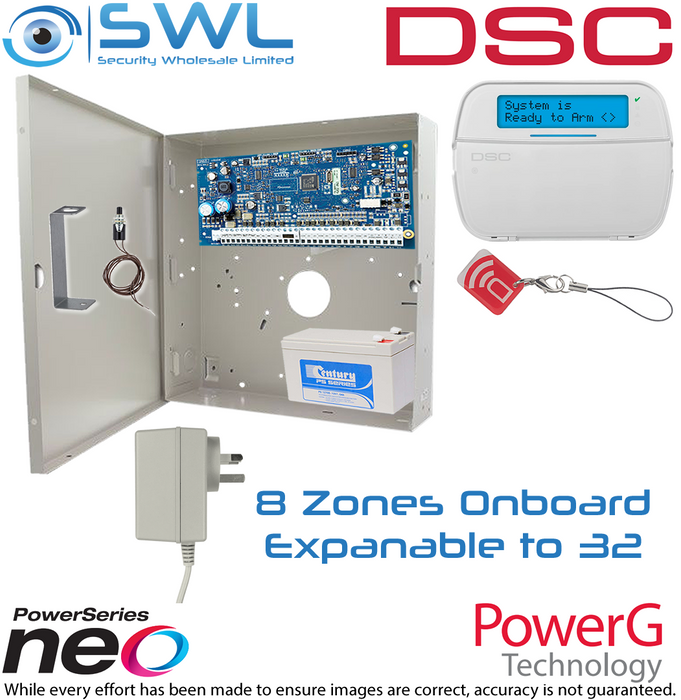 1 x DSC Neo: HS2032 Alarm Panel - 8 to 32 Zone & Cabinet 132311 x 16VAC 24VA Plug Pack 11180