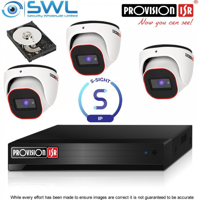 Provision-ISR 4CH NVR KIT: With 3x 4MP S-Sight Turrets 2.8mm, 1Tb HDD