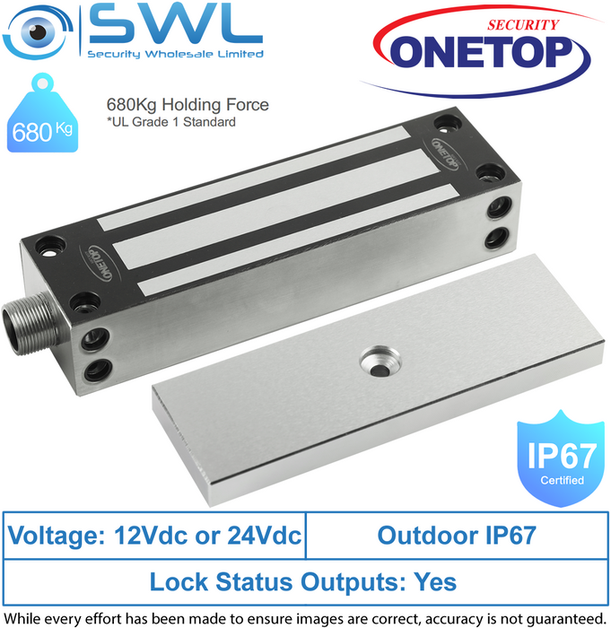 - ONETOP EM5000G: Weather Res' Stainless Steel Maglock, FACE OR SIDE MOUNT 680Kg