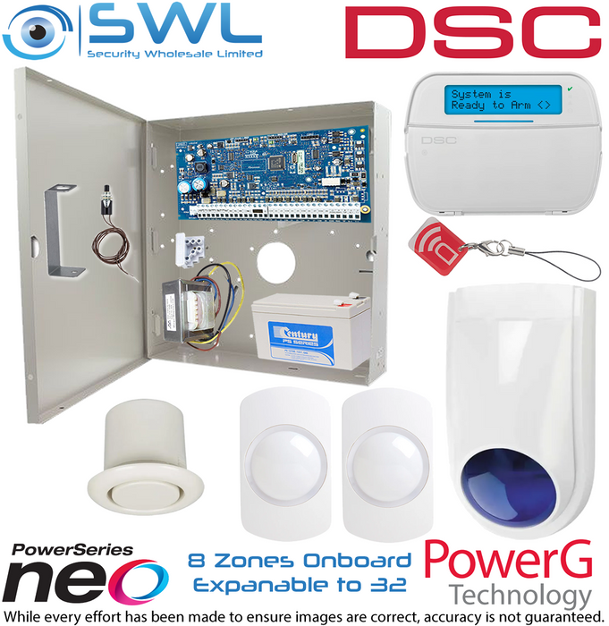 1 x DSC Neo: HS2032 Alarm Panel - 8 to 32 Zone & Cabinet 132311 x 16VAC 40VA Transformer,Fuse Block, Mounting Screws 11190