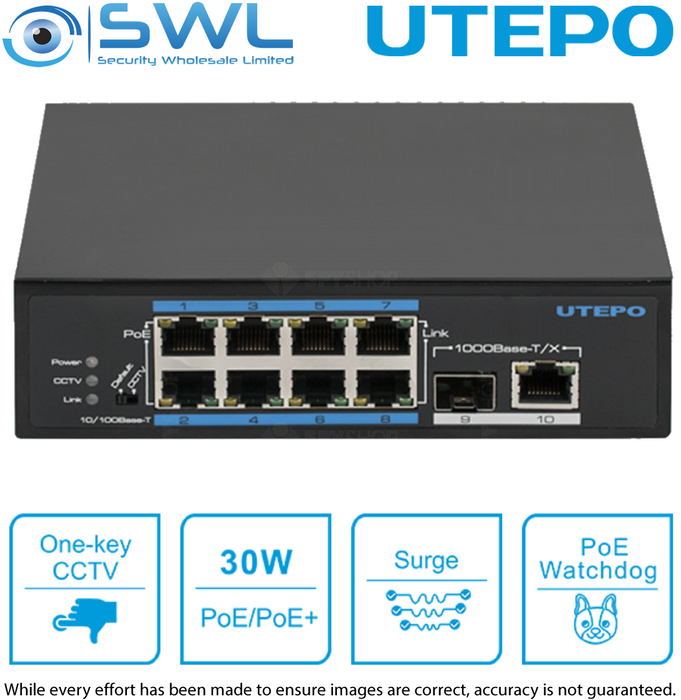 Utepo UTP7108E-POE: 8 x 10/100 PoE 120W + 1 x SFP, Watchdog, DIN