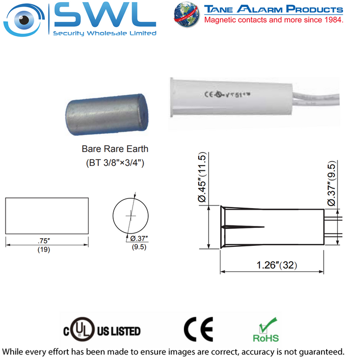 * Contact Size: 9.5mm × 32mm (.37" × 1.26")* Standard Magnet Size: 9.5mm × 32mm (.37" × 1.26")