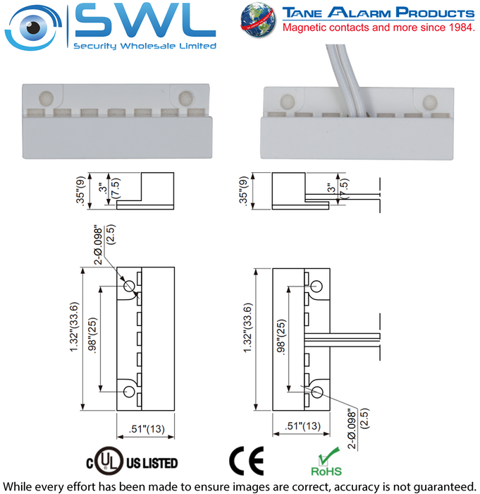 * Contact Size: 33.6mm (L) ×13.5mm (W) ×7.5mm (H) (1.32" ×.53"×.3")* Standard Magnet Size: 33.6mm (L) ×13.5mm (W) ×7.5mm (H) (1.32" ×.53"×.3")