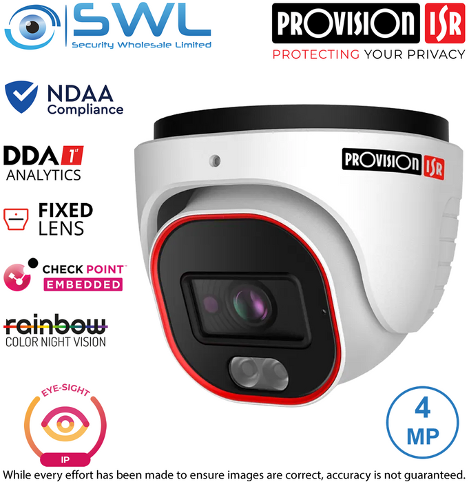 - Provision-ISR DL-340IPERN-36 E-Sight Rainbow 4MP Turret WDR White LED IP67 3.6mm