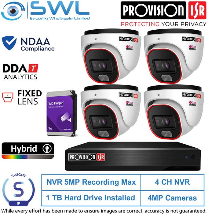 Provision-ISR 4CH NVR5 KIT: With 4x 4MP S-Sight Turrets 2.8mm, 1Tb HDD Inc.