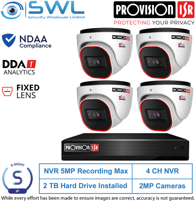 Provision-ISR 4CH NVR5 KIT: With 2Tb & 4x 2MP S-Sight Turrets 2.8mm