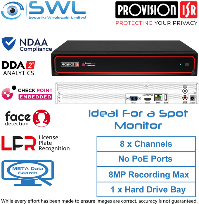 Provision-ISR NVR8-8200N-V2: SPOT MONITOR Application or NVR with NO PoE NDAA