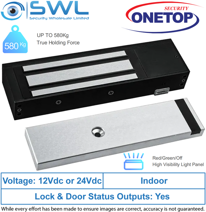 ONETOP EM5700 DSS: Single Door S/Mount Mag Lock 12/24VDC 580Kg BLACK