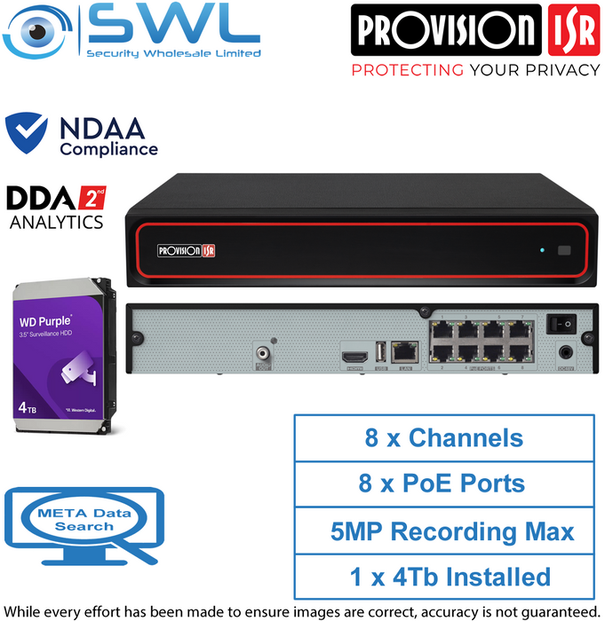 Provision-ISR NVR5-8200PXN(MM) 8CH NVR, 8x PoE, 1x HDD. 4TB HDD Included, NDAA