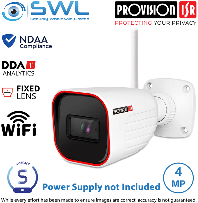 - Provision-ISR I2-340WIPSN-28 S-Sight: 4MP WiFi NDAA Bullet DDA IR20m, IP67 2.8mm