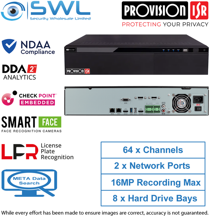 Provision-ISR NVR16-641600RFAN(2U): 64CH 4K NVR No PoE. 2x NIC 8x HDD. No HDD