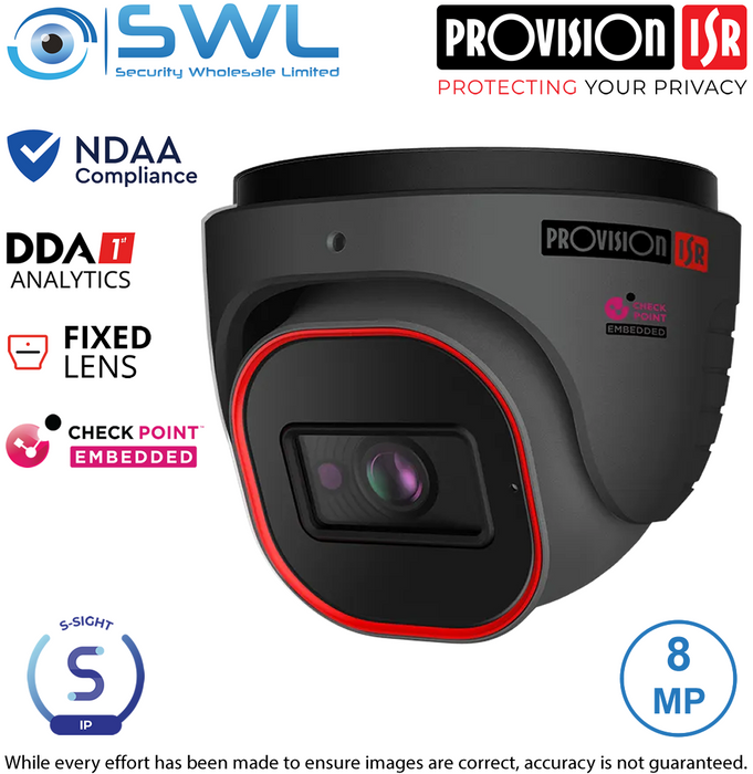 - Provision-ISR DI-380IPSN-28-G-V3: S-Sight 8MP GREY Turret WDR IR20m IP67 2.8mm