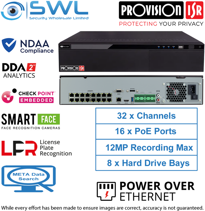 Provision-ISR NVR12-32800FN-16P: 32CH NVR, 16x PoE, LPR, 2x NIC, 8x HDD Bays
