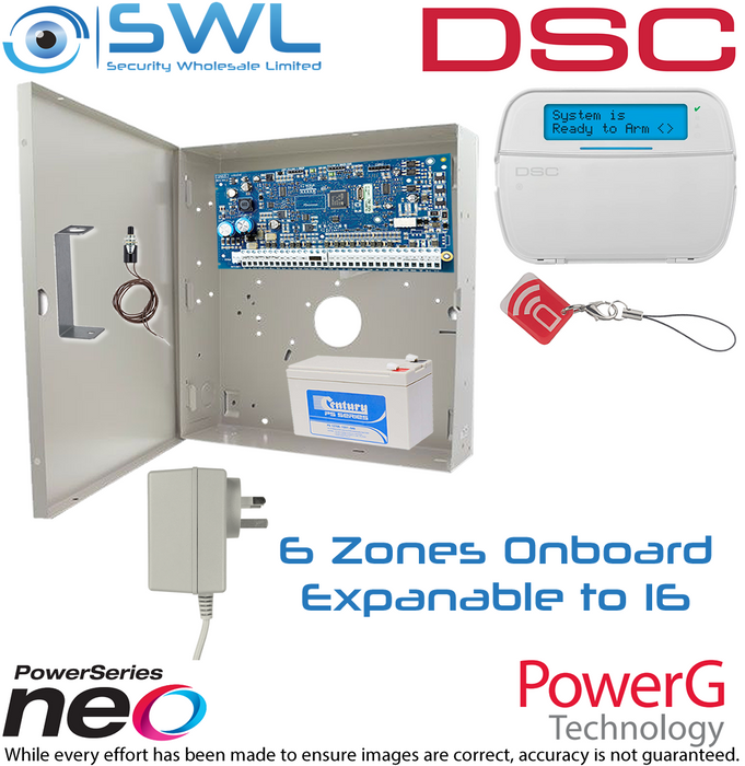 - DSC Neo Kit: 6-16 Zone, Cabinet, Plug Pack, Tamper, RF LCD KP Prox