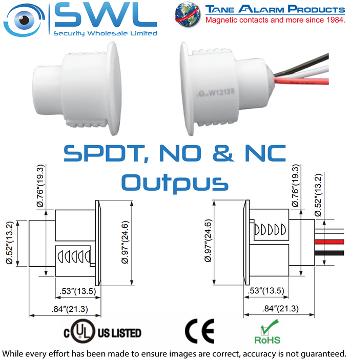- TANE SD-72 WG: Recessed Reed: 9.5mm DIA. 28mm Gap. SPDT, NO & NC Outputs