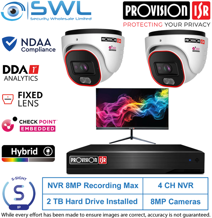 Provision-ISR 4CH NVR8 KIT: With 2x 8MP S-Sight Turrets 2.8mm, 2TB, 24" Monitor