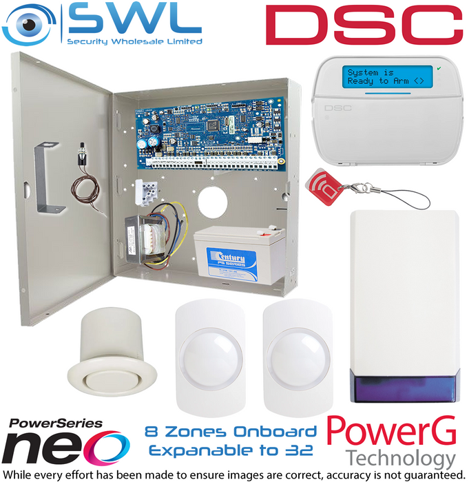 1 x DSC Neo: HS2032 Alarm Panel - 8 to 32 Zone & Cabinet 132311 x 16VAC 40VA Transformer,Fuse Block, Mounting Screws 11190