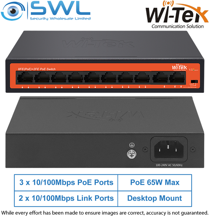 - Wi-Tek WI-PS210H V3: 8x 10/100Mbps PoE Ports + 2x 10/100Mbps RJ45, 60W