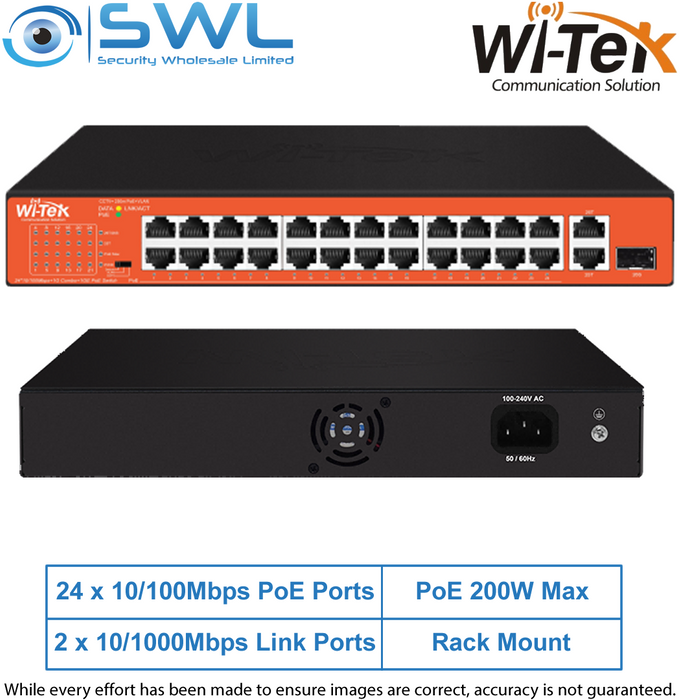 Wi-Tek WI-PS526GH: 24x 10/100Mbps PoE Ports + 1x 1000Mbps RJ45 & SFP Ports, 185W
