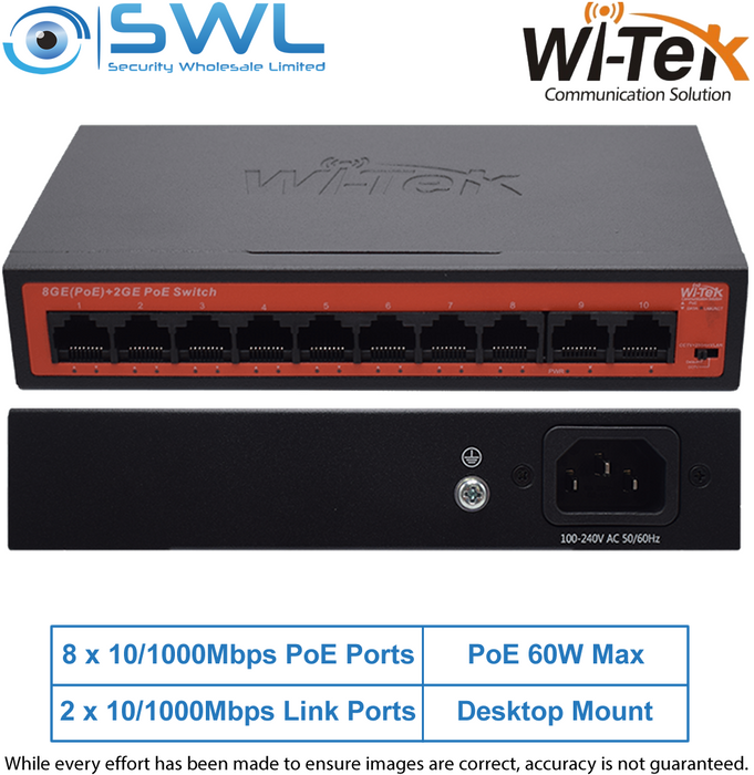 - Wi-Tek WI-PS308GH V2: 8x 1000Mbps PoE Ports + 2x 1000Mbps RJ45, 60W